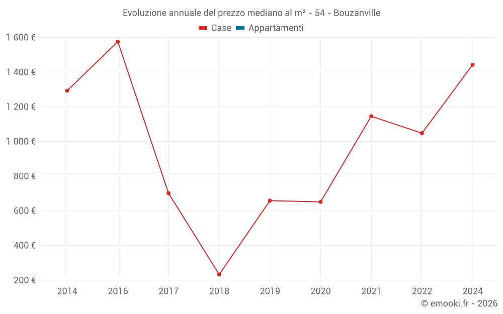 Evoluzione del prezzo mediano al m² degli appartamenti
