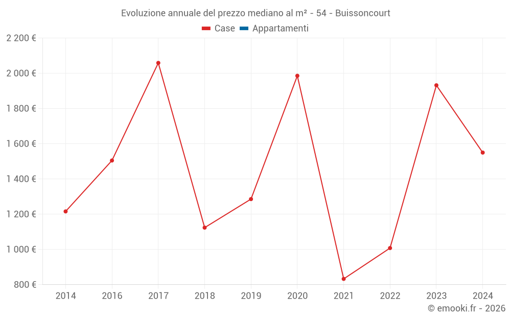 Evoluzione del prezzo mediano al m² degli appartamenti
