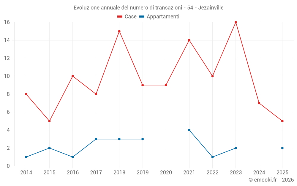 Il prezzo mediano sulle 22 transazioni di case degli ultimi 24 mesi nel comune di Jezainville era di 1 896 € al metro quadrato per un valore patrimoniale mediano di 173 000 €. In questo periodo il 60% delle transazioni era tra 1 152 e 2 557 € al metro quadrato (dal 2° all'8° decile).