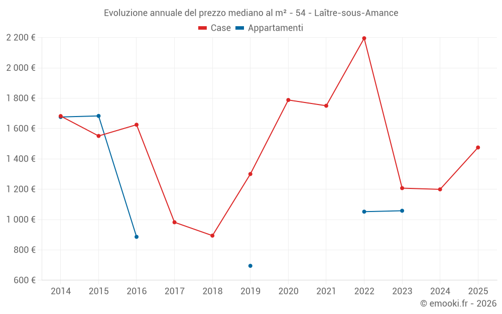 Evoluzione del prezzo mediano al m² degli appartamenti