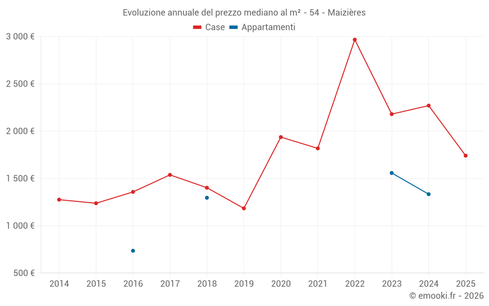 Il prezzo mediano sulle 14 transazioni di case degli ultimi 24 mesi nel comune di Maizières era di 1 924 € al metro quadrato per un valore patrimoniale mediano di 230 385 €. In questo periodo il 60% delle transazioni era tra 1 366 e 2 432 € al metro quadrato (dal 2° all'8° decile).