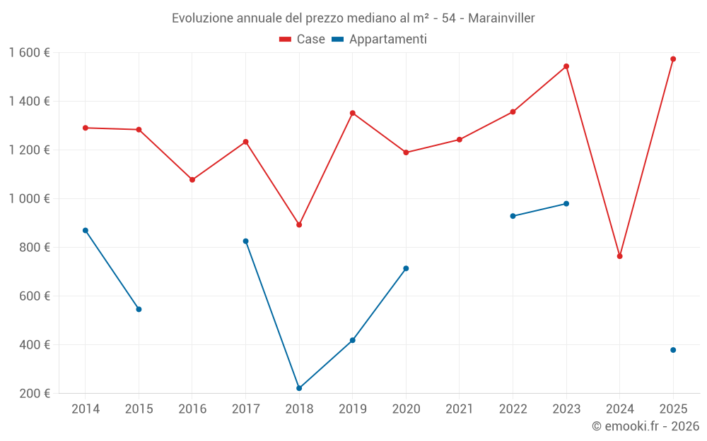 Il prezzo mediano sulle 17 transazioni di case degli ultimi 24 mesi nel comune di Marainviller era di 1 004 € al metro quadrato per un valore patrimoniale mediano di 120 000 €. In questo periodo il 60% delle transazioni era tra 705 e 1 782 € al metro quadrato (dal 2° all'8° decile).