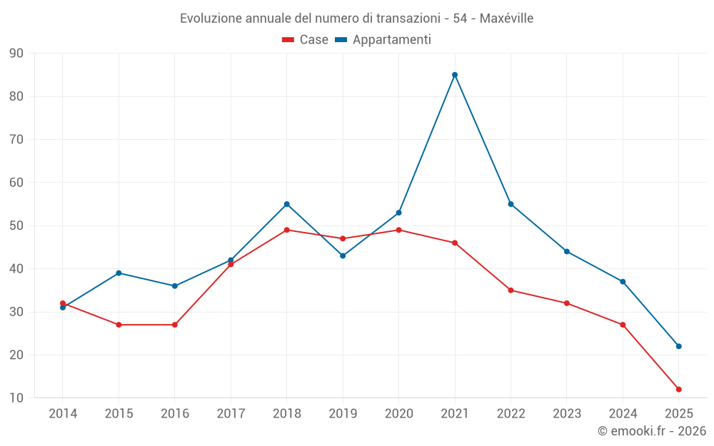 Il prezzo mediano sulle 27 transazioni di case degli ultimi 12 mesi nel comune di Maxéville era di 2 279 € al metro quadrato per un valore patrimoniale mediano di 200 000 €. In questo periodo il 60% delle transazioni era tra 1 631 e 2 735 € al metro quadrato (dal 2° all'8° decile).