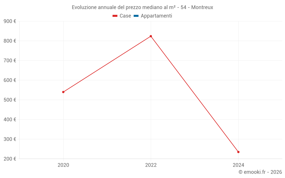 Evoluzione del prezzo mediano al m² delle case