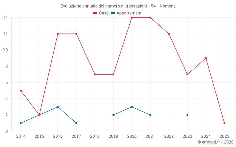 Il prezzo mediano sulle 14 transazioni di case degli ultimi 24 mesi nel comune di Nomeny era di 2 013 € al metro quadrato per un valore patrimoniale mediano di 218 175 €. In questo periodo il 60% delle transazioni era tra 1 535 e 2 387 € al metro quadrato (dal 2° all'8° decile).
