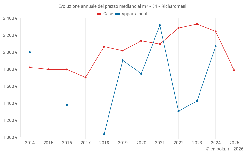 Il prezzo mediano sulle 31 transazioni di case degli ultimi 24 mesi nel comune di Richardménil era di 2 251 € al metro quadrato per un valore patrimoniale mediano di 211 000 €. In questo periodo il 60% delle transazioni era tra 1 624 e 2 570 € al metro quadrato (dal 2° all'8° decile).
