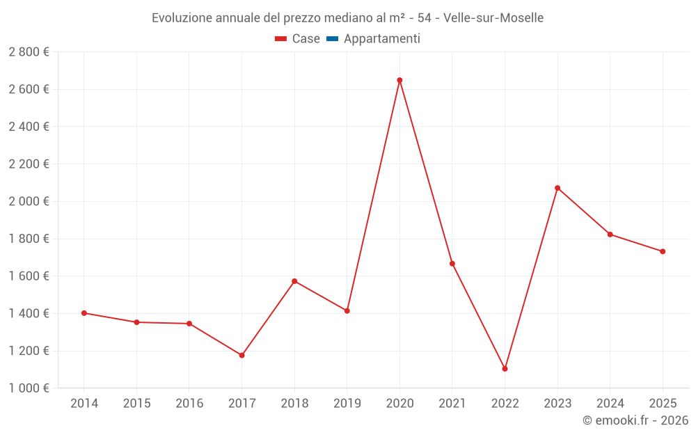 Evoluzione del prezzo mediano al m² degli appartamenti