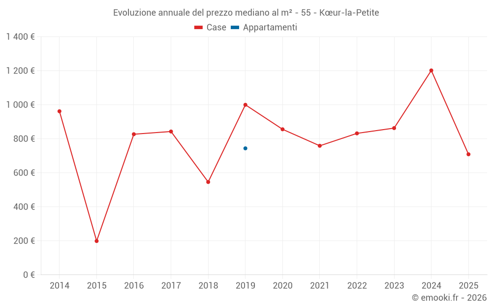 Evoluzione del prezzo mediano al m² degli appartamenti