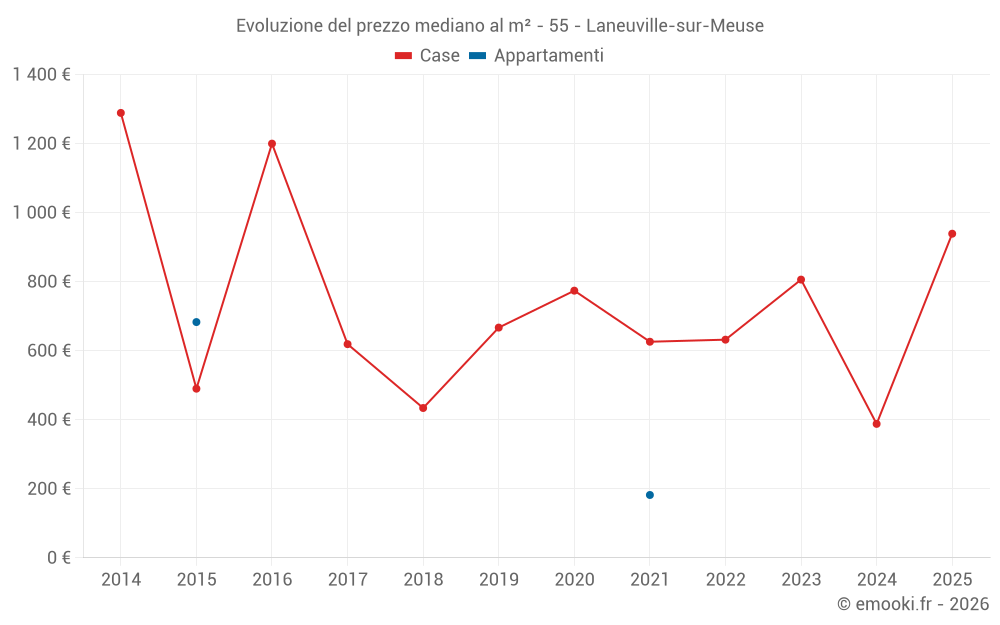 Il prezzo mediano sulle 16 transazioni di case degli ultimi 24 mesi nel comune di Laneuville-sur-Meuse era di 579 € al metro quadrato per un valore patrimoniale mediano di 43 000 €. In questo periodo il 60% delle transazioni era tra 275 e 939 € al metro quadrato (dal 2° all'8° decile).