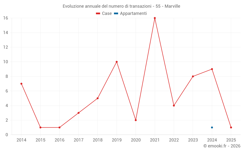 Il prezzo mediano sulle 14 transazioni di case degli ultimi 24 mesi nel comune di Marville era di 870 € al metro quadrato per un valore patrimoniale mediano di 99 500 €. In questo periodo il 60% delle transazioni era tra 336 e 1 382 € al metro quadrato (dal 2° all'8° decile).