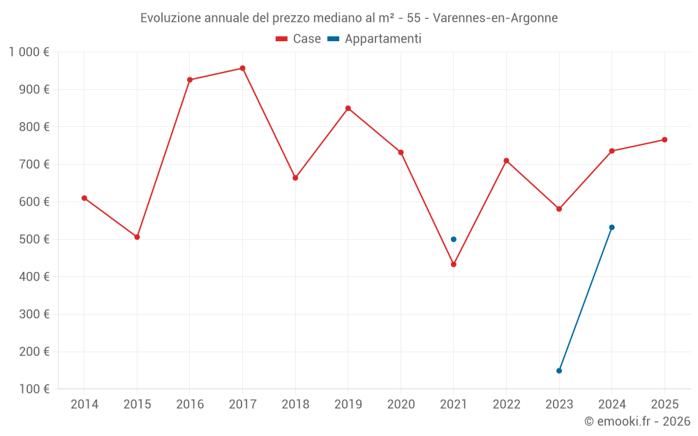 Evoluzione del prezzo mediano al m² degli appartamenti