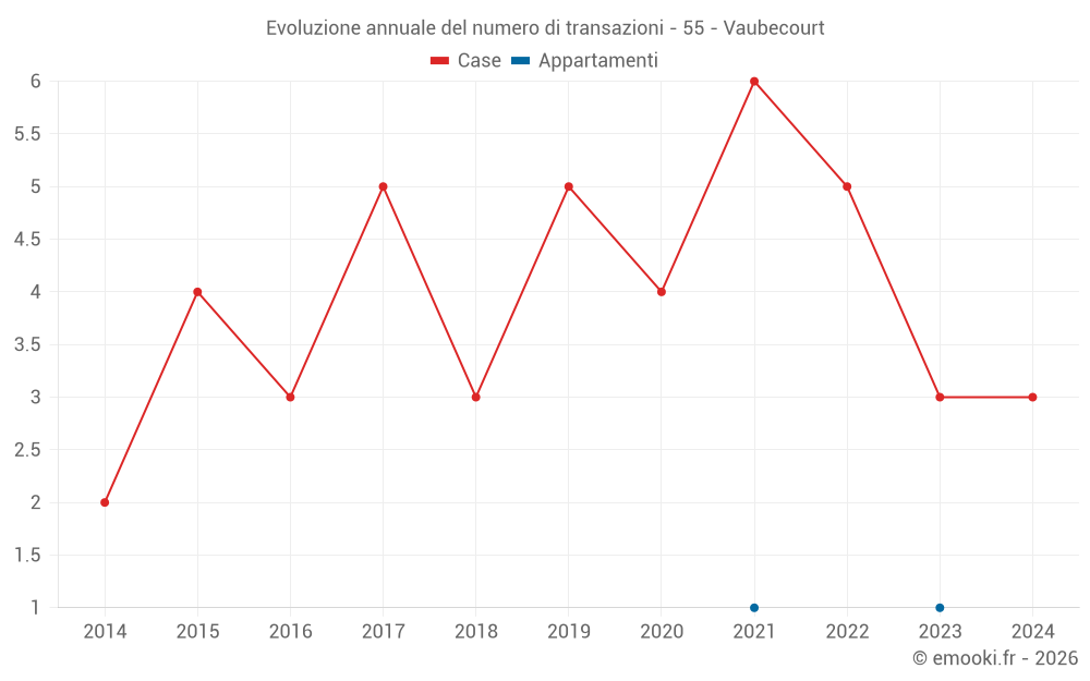 Attenzione, ultimo anno incompleto. Le proiezioni sono effettuate in base alle proporzioni tra semestri dell'anno precedente a livello dipartimentale/nazionale e per tipo di proprietà .