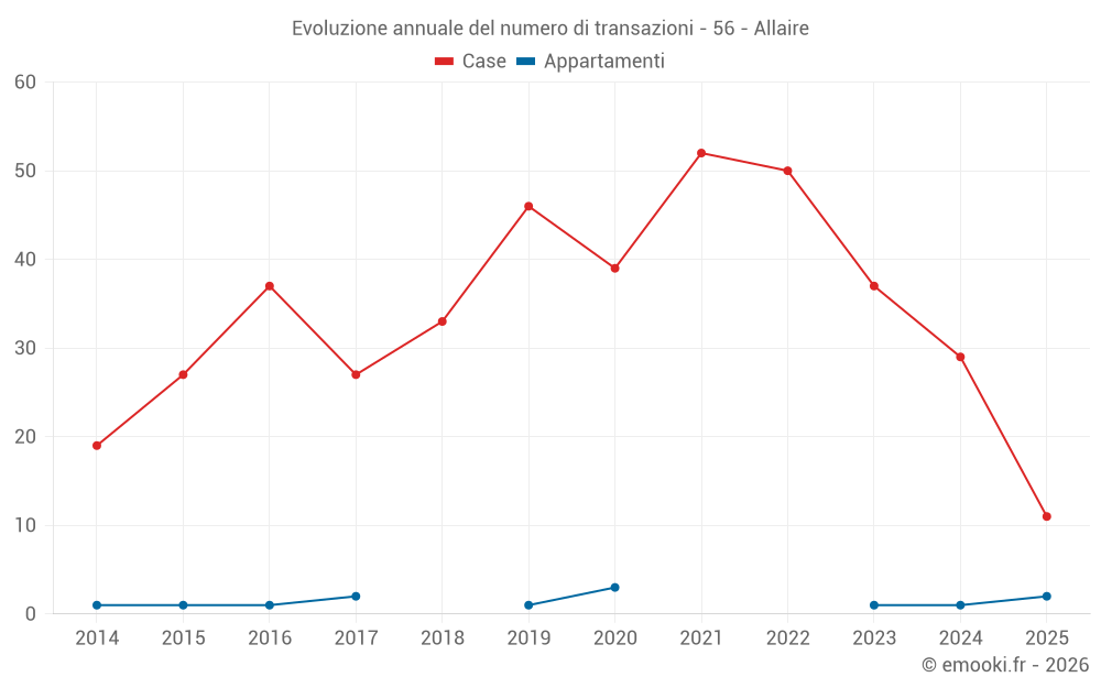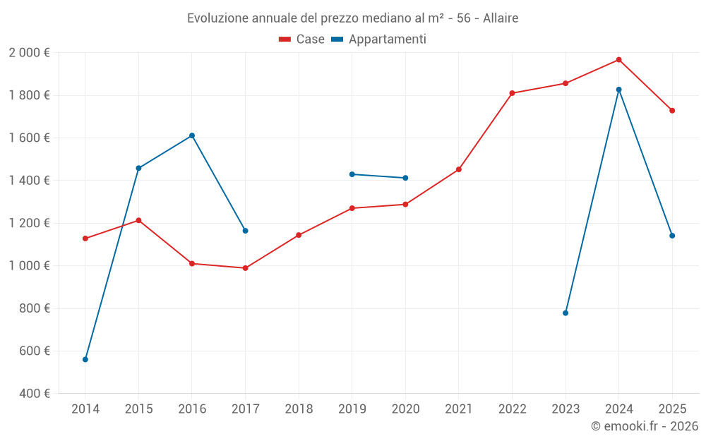 Il prezzo mediano sulle 29 transazioni di case degli ultimi 12 mesi nel comune di Allaire era di 1 792 € al metro quadrato per un valore patrimoniale mediano di 161 500 €. In questo periodo il 60% delle transazioni era tra 1 498 e 2 173 € al metro quadrato (dal 2° all'8° decile).