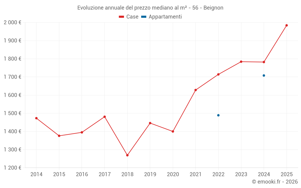 Il prezzo mediano sulle 23 transazioni di case degli ultimi 12 mesi nel comune di Beignon era di 1 731 € al metro quadrato per un valore patrimoniale mediano di 180 000 €. In questo periodo il 60% delle transazioni era tra 1 329 e 2 239 € al metro quadrato (dal 2° all'8° decile).