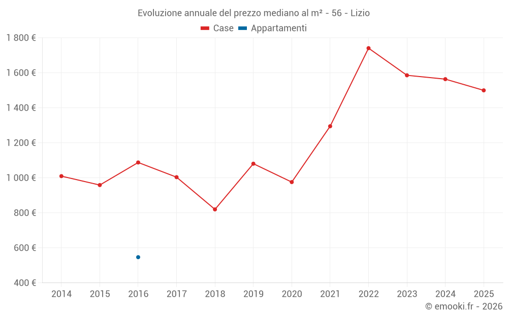 Evoluzione del prezzo mediano al m² degli appartamenti