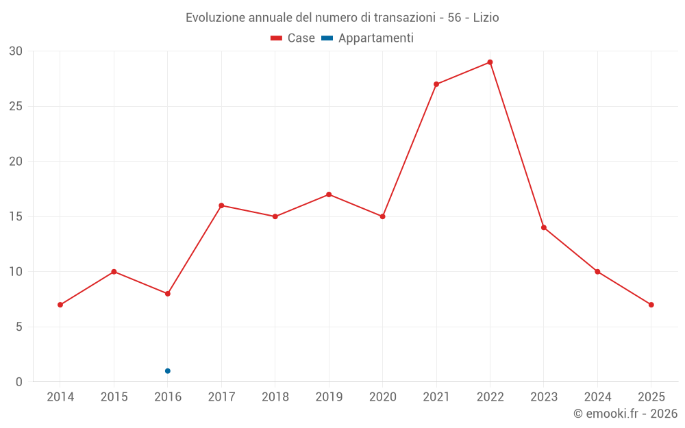 Il prezzo mediano sulle 20 transazioni di case degli ultimi 24 mesi nel comune di Lizio era di 1 572 € al metro quadrato per un valore patrimoniale mediano di 157 250 €. In questo periodo il 60% delle transazioni era tra 1 124 e 2 049 € al metro quadrato (dal 2° all'8° decile).