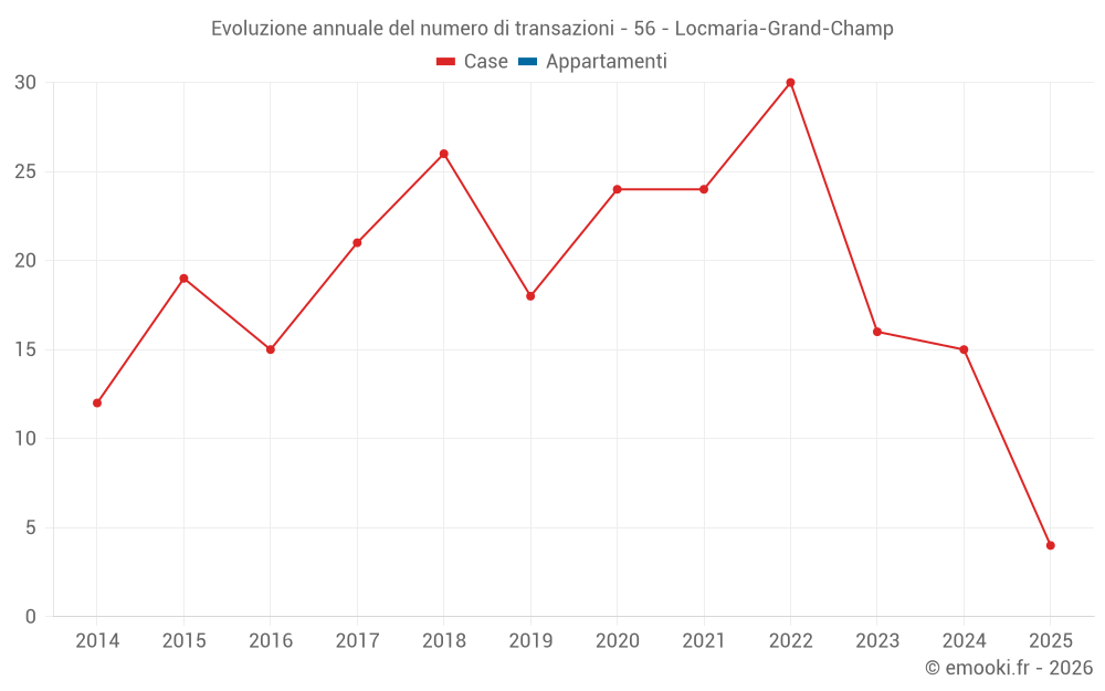 Il prezzo mediano sulle 27 transazioni di case degli ultimi 24 mesi nel comune di Locmaria-Grand-Champ era di 2 641 € al metro quadrato per un valore patrimoniale mediano di 260 000 €. In questo periodo il 60% delle transazioni era tra 2 058 e 3 104 € al metro quadrato (dal 2° all'8° decile).