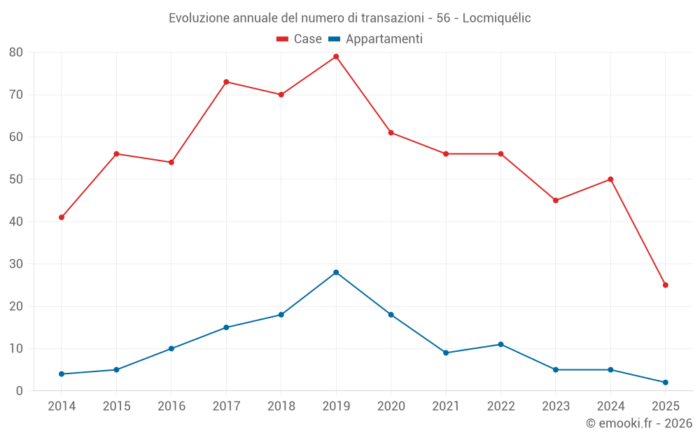 Il prezzo mediano sulle 20 transazioni di case degli ultimi 3 mesi nel comune di Locmiquélic era di 2 800 € al metro quadrato per un valore patrimoniale mediano di 308 000 €. In questo periodo il 60% delle transazioni era tra 2 266 e 3 481 € al metro quadrato (dal 2° all'8° decile).