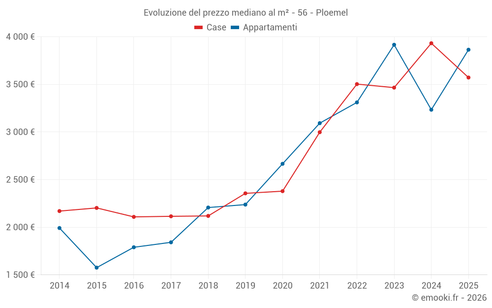 Mappa dei prezzi della casa nel comune di Ploemel, scegli una sezione per vedere le transazioni per parcella.