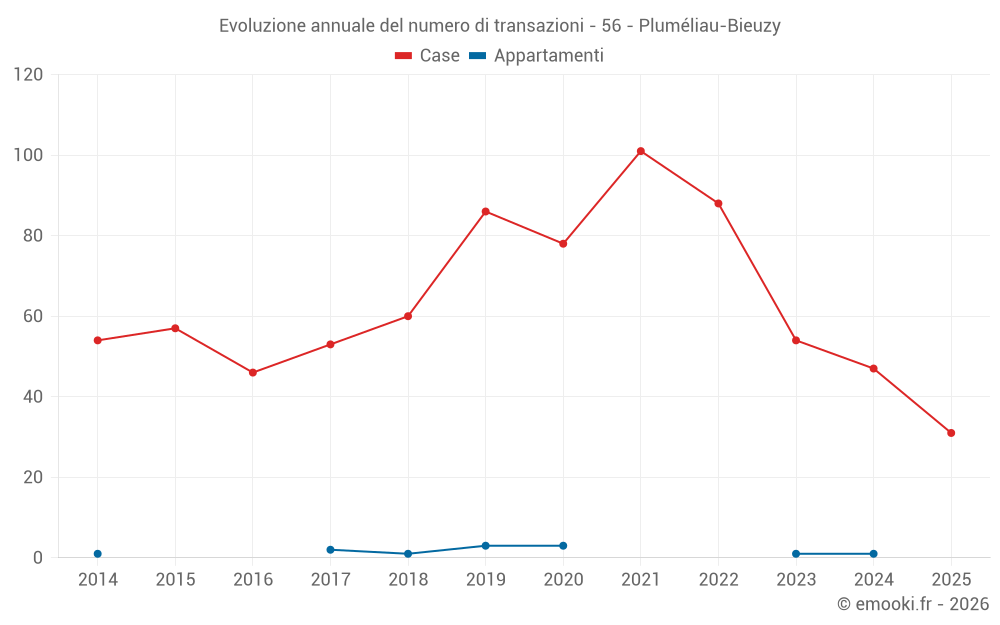 Il prezzo mediano sulle 31 transazioni di case degli ultimi 6 mesi nel comune di Pluméliau-Bieuzy era di 1 269 € al metro quadrato per un valore patrimoniale mediano di 115 000 €. In questo periodo il 60% delle transazioni era tra 773 e 1 917 € al metro quadrato (dal 2° all'8° decile).