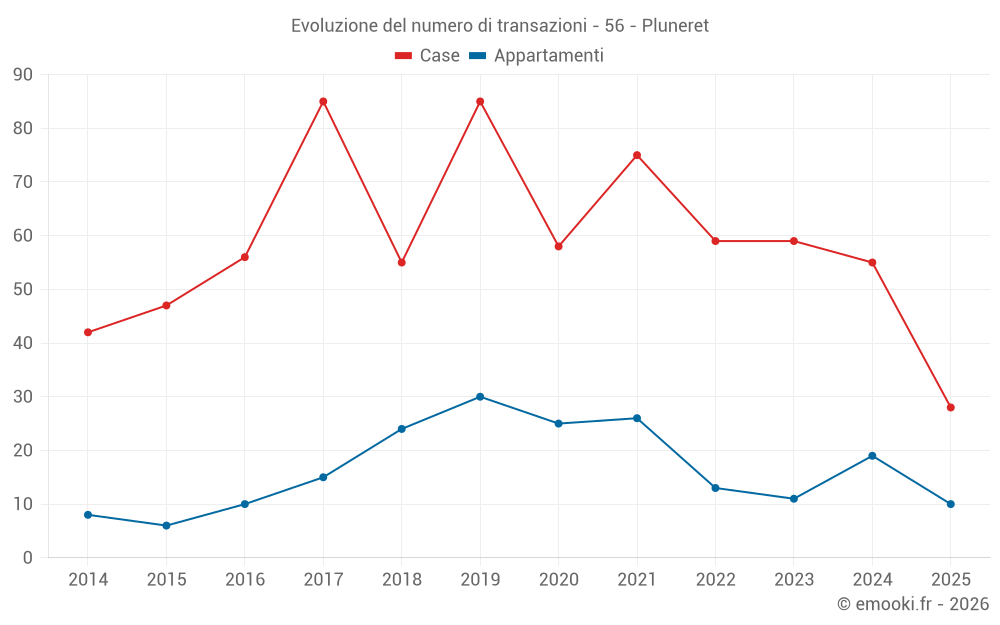 Il prezzo mediano sulle 28 transazioni di case degli ultimi 6 mesi nel comune di Pluneret era di 2 880 € al metro quadrato per un valore patrimoniale mediano di 268 215 €. In questo periodo il 60% delle transazioni era tra 2 082 e 3 257 € al metro quadrato (dal 2° all'8° decile).