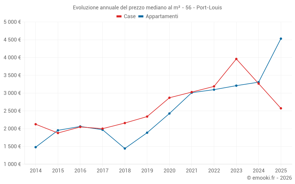 Il prezzo mediano sulle 20 transazioni di appartamenti degli ultimi 12 mesi nel comune di Port-Louis era di 3 574 € al metro quadrato per un valore patrimoniale mediano di 188 038 €. In questo periodo il 60% delle transazioni era tra 3 110 e 4 544 € al metro quadrato (dal 2° all'8° decile).