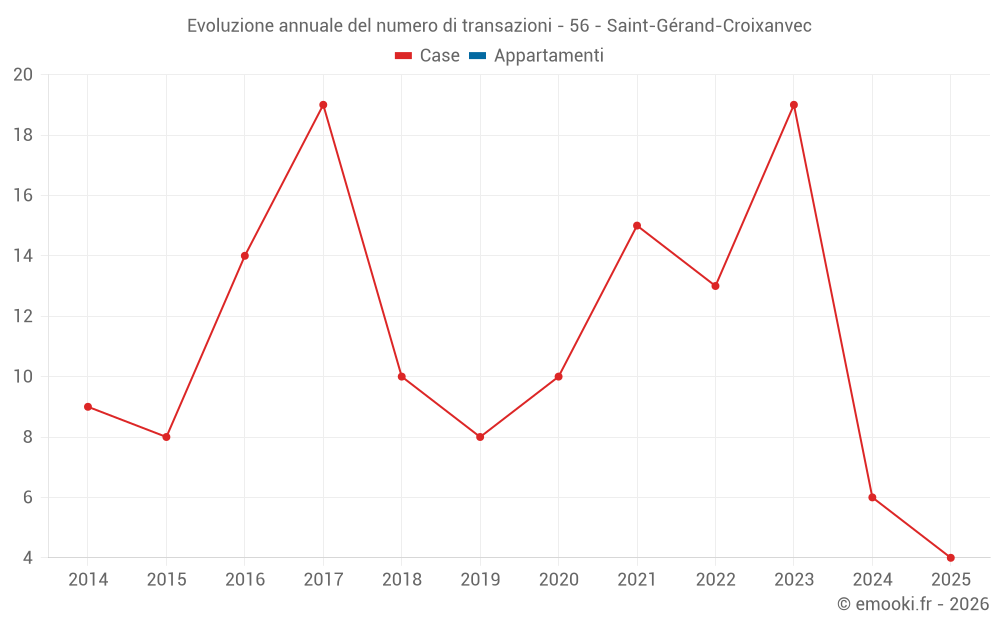 Il prezzo mediano sulle 16 transazioni di case degli ultimi 24 mesi nel comune di Saint-Gérand-Croixanvec era di 1 892 € al metro quadrato per un valore patrimoniale mediano di 170 000 €. In questo periodo il 60% delle transazioni era tra 1 149 e 2 179 € al metro quadrato (dal 2° all'8° decile).