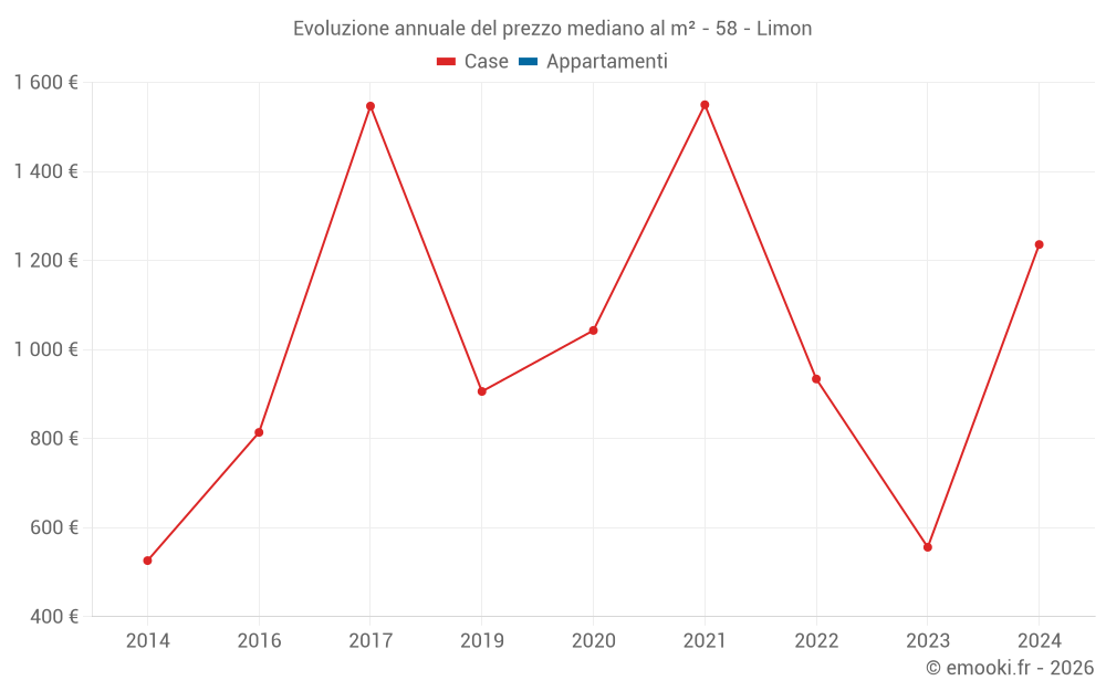 Evoluzione del prezzo mediano al m² degli appartamenti