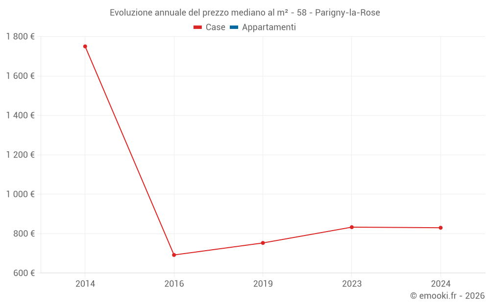 Evoluzione del prezzo mediano al m² delle case