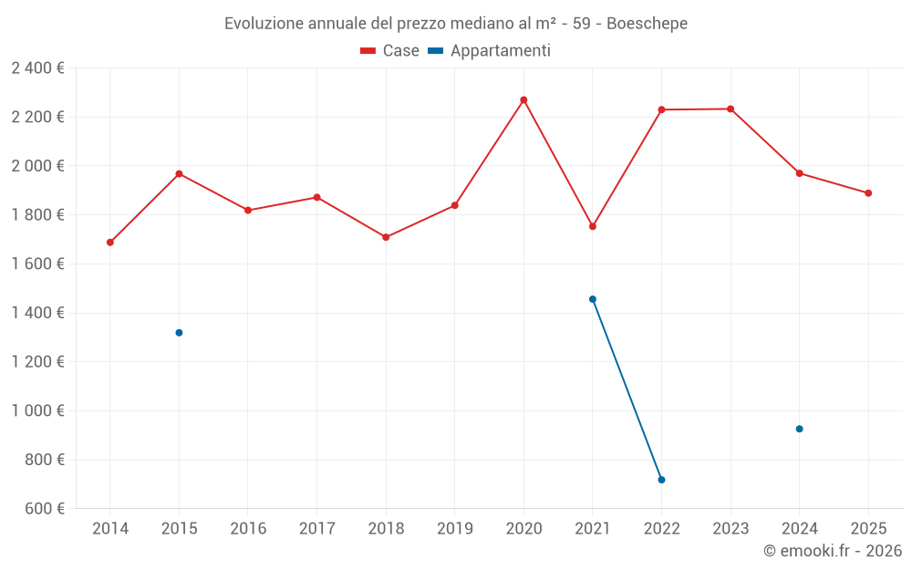 Il prezzo mediano sulle 34 transazioni di case degli ultimi 12 mesi nel comune di Boeschepe era di 1 992 € al metro quadrato per un valore patrimoniale mediano di 182 500 €. In questo periodo il 60% delle transazioni era tra 1 380 e 2 887 € al metro quadrato (dal 2° all'8° decile).