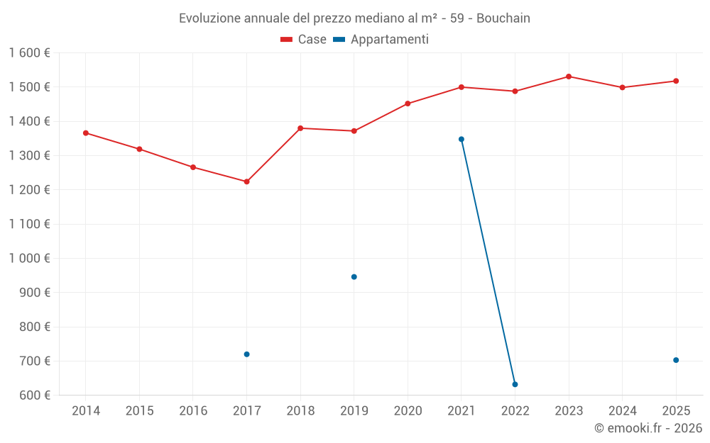 Qual è il prezzo al m2 delle case in Bouchain?