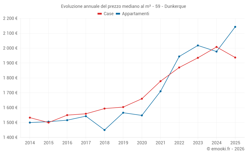 Qual è il prezzo al m2 delle case in Dunkerque?