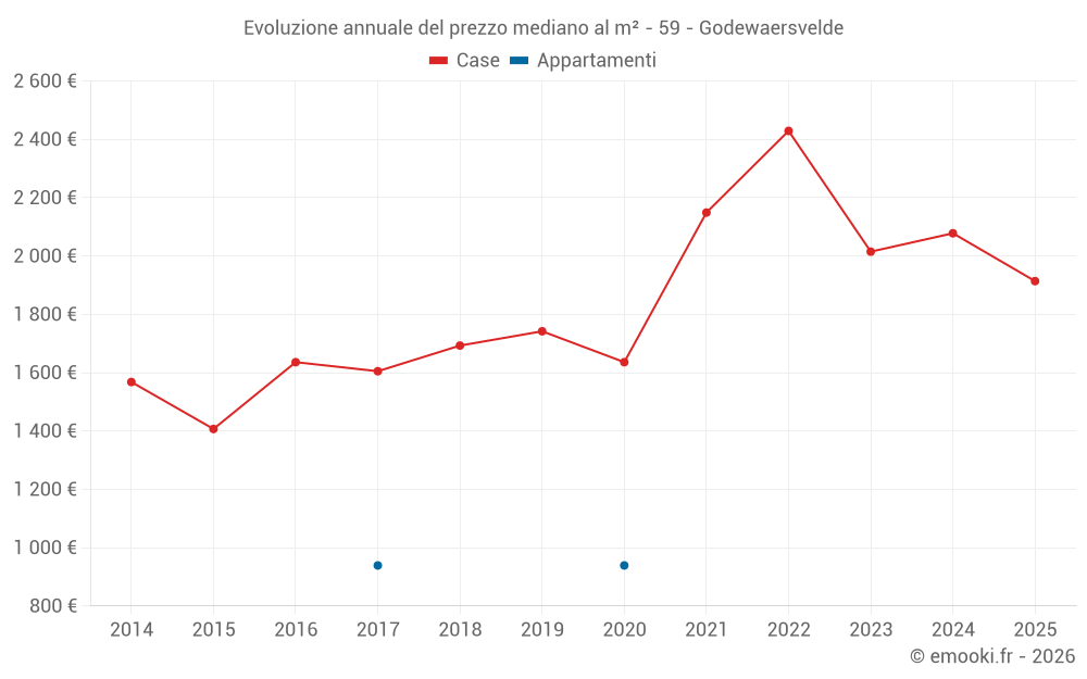 Qual è il prezzo al m2 delle case in Godewaersvelde?