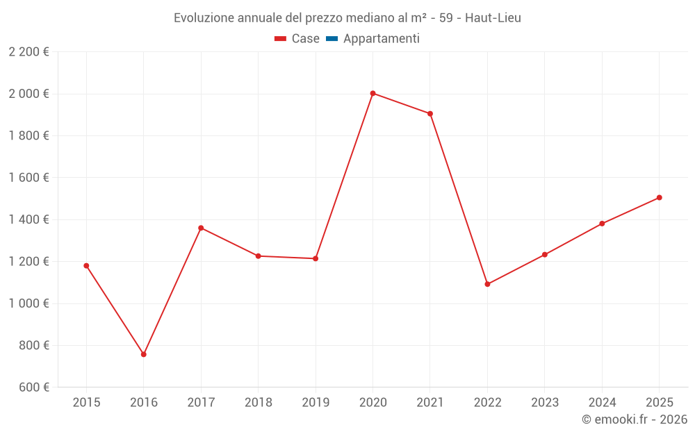 Evoluzione del prezzo mediano al m² degli appartamenti