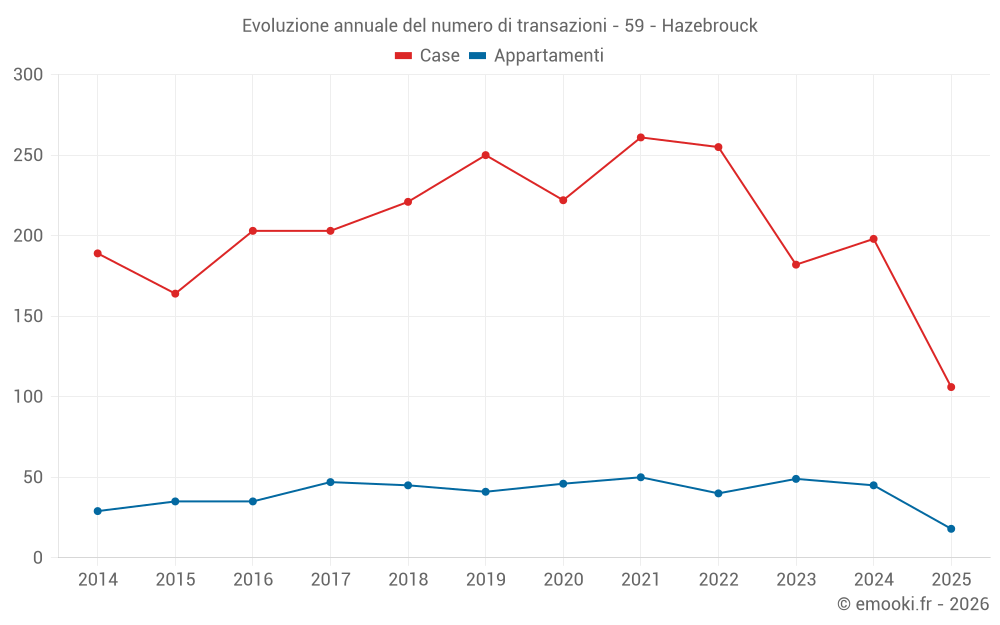 Il prezzo mediano sulle 18 transazioni di appartamenti degli ultimi 6 mesi nel comune di Hazebrouck era di 2 320 € al metro quadrato per un valore patrimoniale mediano di 153 362 €. In questo periodo il 60% delle transazioni era tra 1 582 e 2 727 € al metro quadrato (dal 2° all'8° decile).