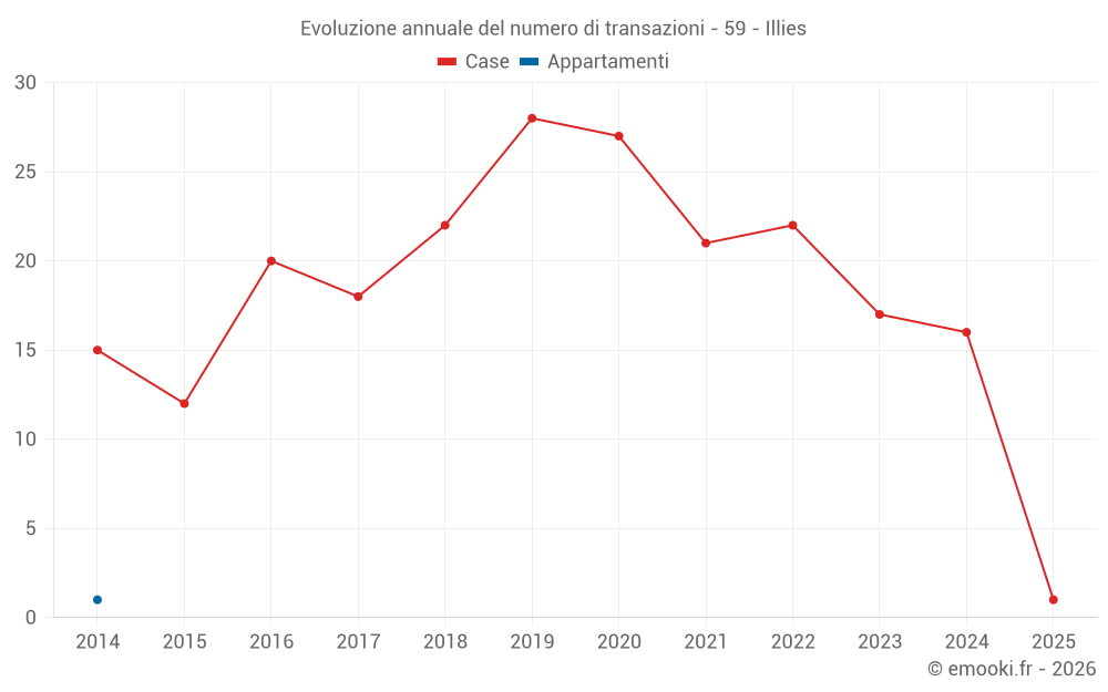 Il prezzo mediano sulle 27 transazioni di case degli ultimi 24 mesi nel comune di Illies era di 2 227 € al metro quadrato per un valore patrimoniale mediano di 223 000 €. In questo periodo il 60% delle transazioni era tra 1 750 e 2 575 € al metro quadrato (dal 2° all'8° decile).