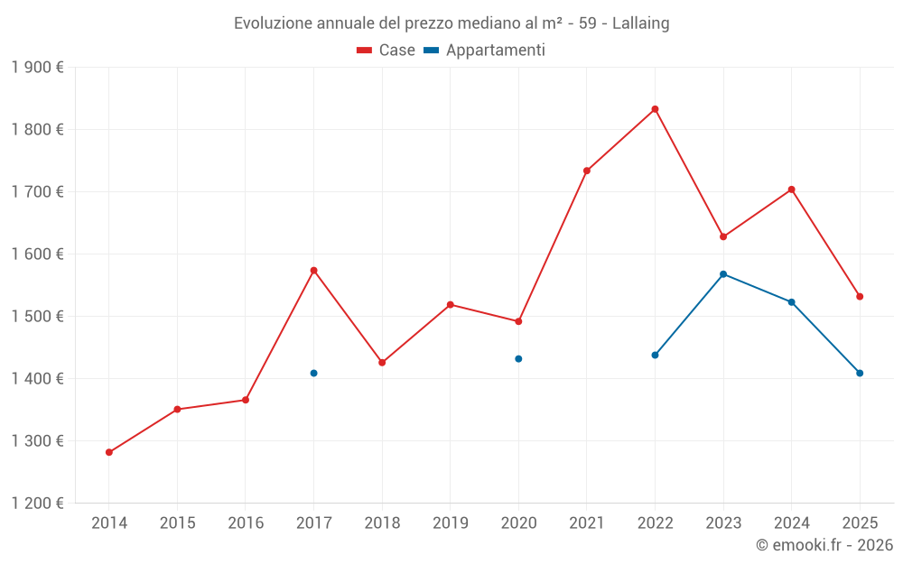 Qual è il prezzo al m2 delle case in Lallaing?