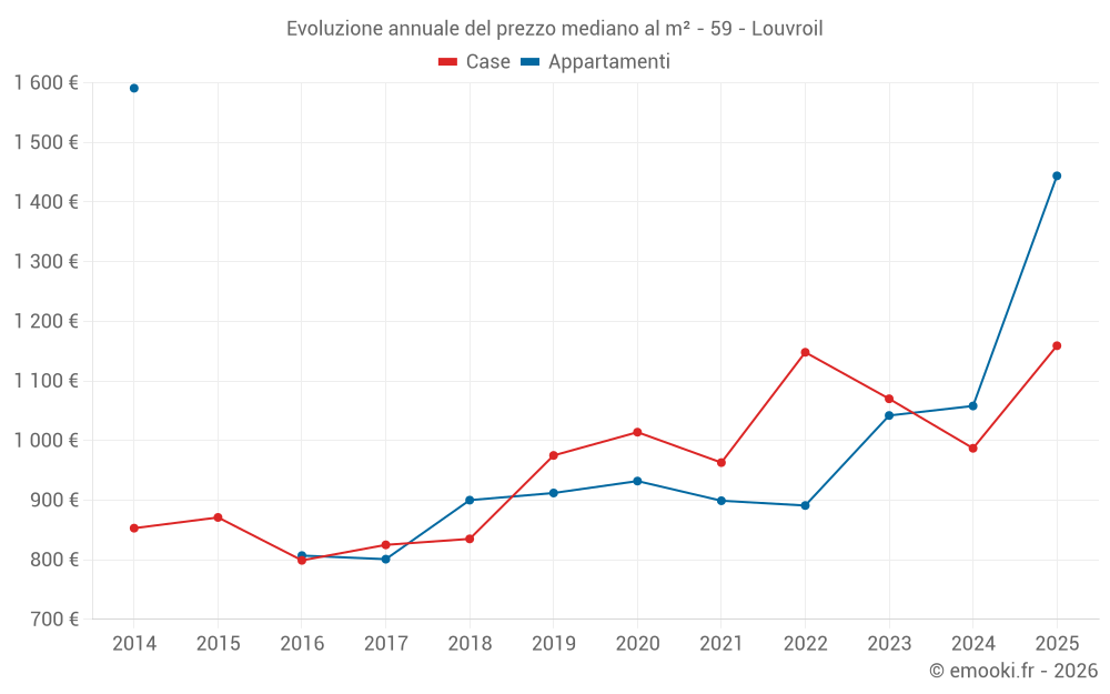 Qual è il prezzo al m2 degli appartamenti in Louvroil?