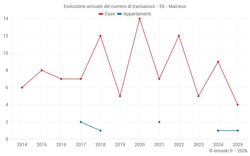Il prezzo mediano sulle 15 transazioni di case degli ultimi 24 mesi nel comune di Mairieux era di 1 882 € al metro quadrato per un valore patrimoniale mediano di 206 000 €. In questo periodo il 60% delle transazioni era tra 1 610 e 2 330 € al metro quadrato (dal 2° all'8° decile).