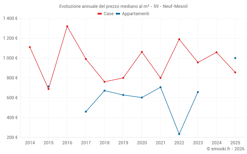 Qual è il prezzo al m2 delle case in Neuf-Mesnil?
