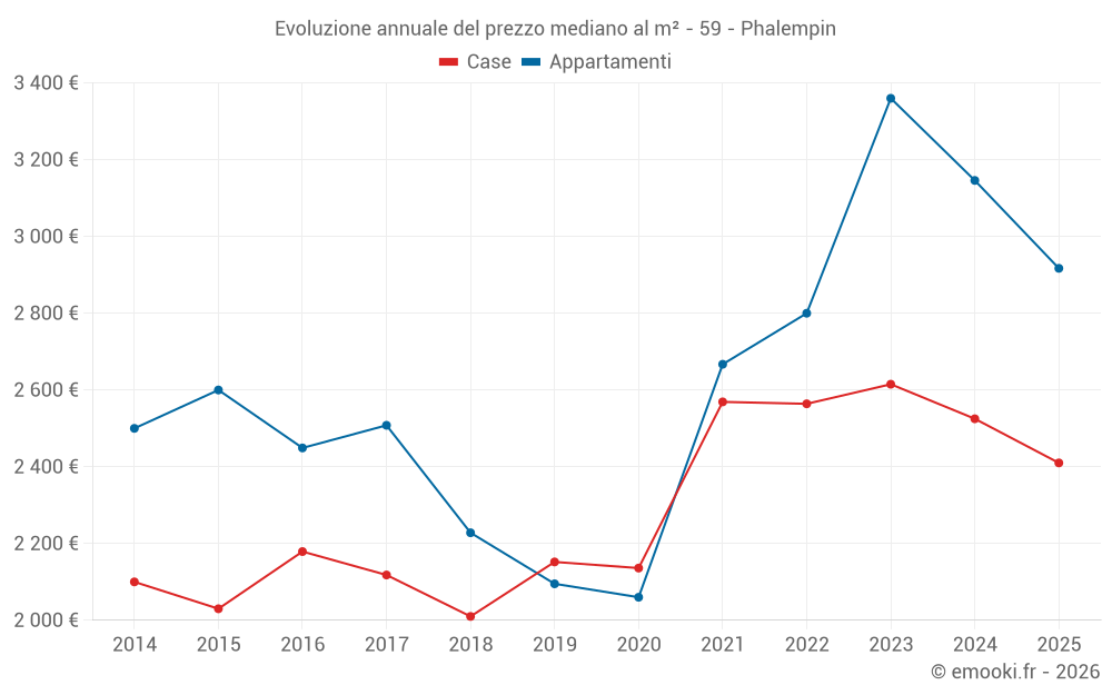 Il prezzo mediano sulle 19 transazioni di case degli ultimi 6 mesi nel comune di Phalempin era di 2 410 € al metro quadrato per un valore patrimoniale mediano di 268 000 €. In questo periodo il 60% delle transazioni era tra 2 201 e 3 192 € al metro quadrato (dal 2° all'8° decile).