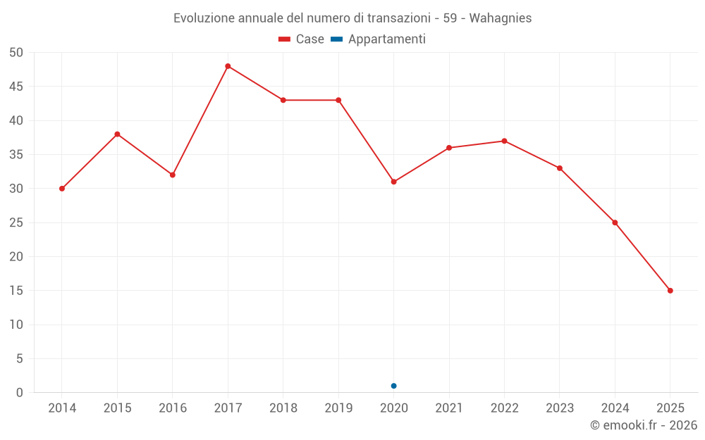 Il prezzo mediano sulle 28 transazioni di case degli ultimi 12 mesi nel comune di Wahagnies era di 2 200 € al metro quadrato per un valore patrimoniale mediano di 185 000 €. In questo periodo il 60% delle transazioni era tra 1 743 e 2 648 € al metro quadrato (dal 2° all'8° decile).