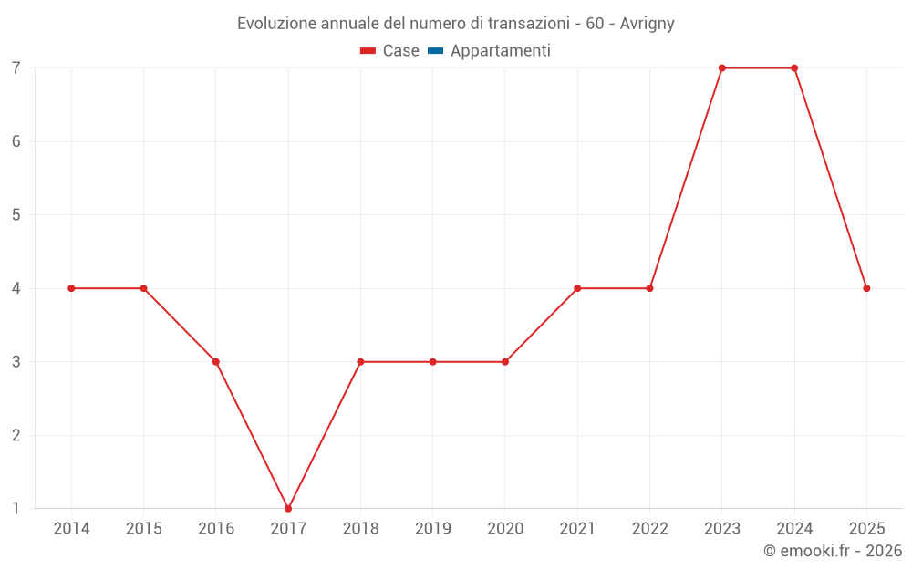 Il prezzo mediano sulle 14 transazioni di case degli ultimi 24 mesi nel comune di Avrigny era di 2 168 € al metro quadrato per un valore patrimoniale mediano di 177 000 €. In questo periodo il 60% delle transazioni era tra 1 507 e 2 850 € al metro quadrato (dal 2° all'8° decile).