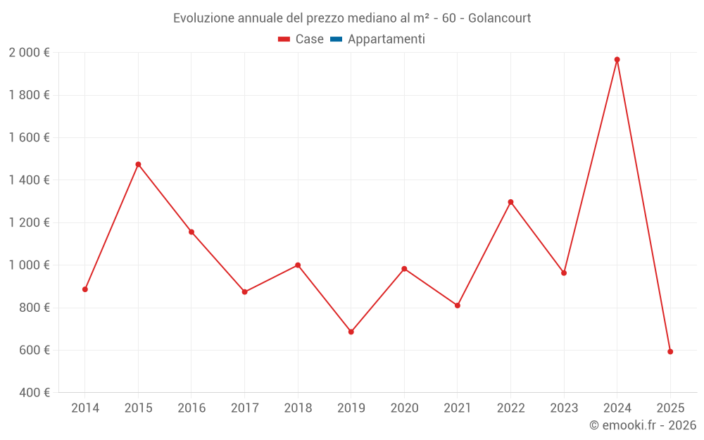 Evoluzione del prezzo mediano al m² degli appartamenti