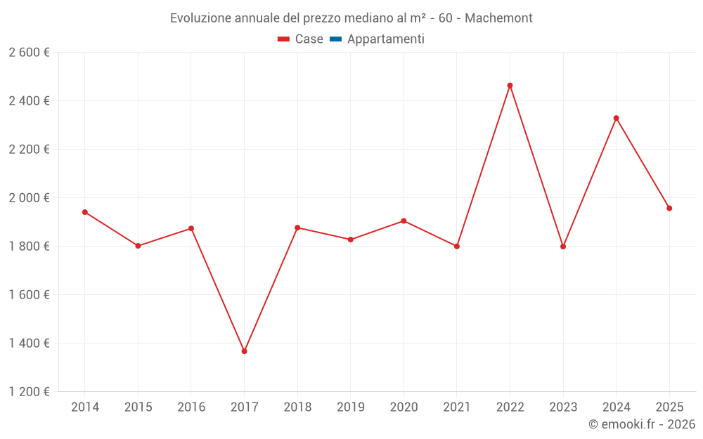 Il prezzo mediano sulle 16 transazioni di case degli ultimi 24 mesi nel comune di Machemont era di 1 976 € al metro quadrato per un valore patrimoniale mediano di 183 000 €. In questo periodo il 60% delle transazioni era tra 1 327 e 2 348 € al metro quadrato (dal 2° all'8° decile).