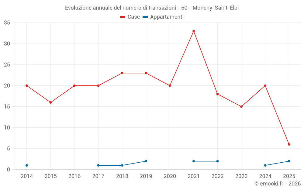 Il prezzo mediano sulle 16 transazioni di case degli ultimi 12 mesi nel comune di Monchy-Saint-Éloi era di 2 190 € al metro quadrato per un valore patrimoniale mediano di 195 000 €. In questo periodo il 60% delle transazioni era tra 1 839 e 2 549 € al metro quadrato (dal 2° all'8° decile).