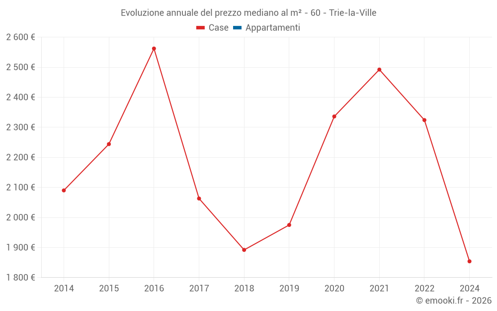 Evoluzione del prezzo mediano al m² delle case