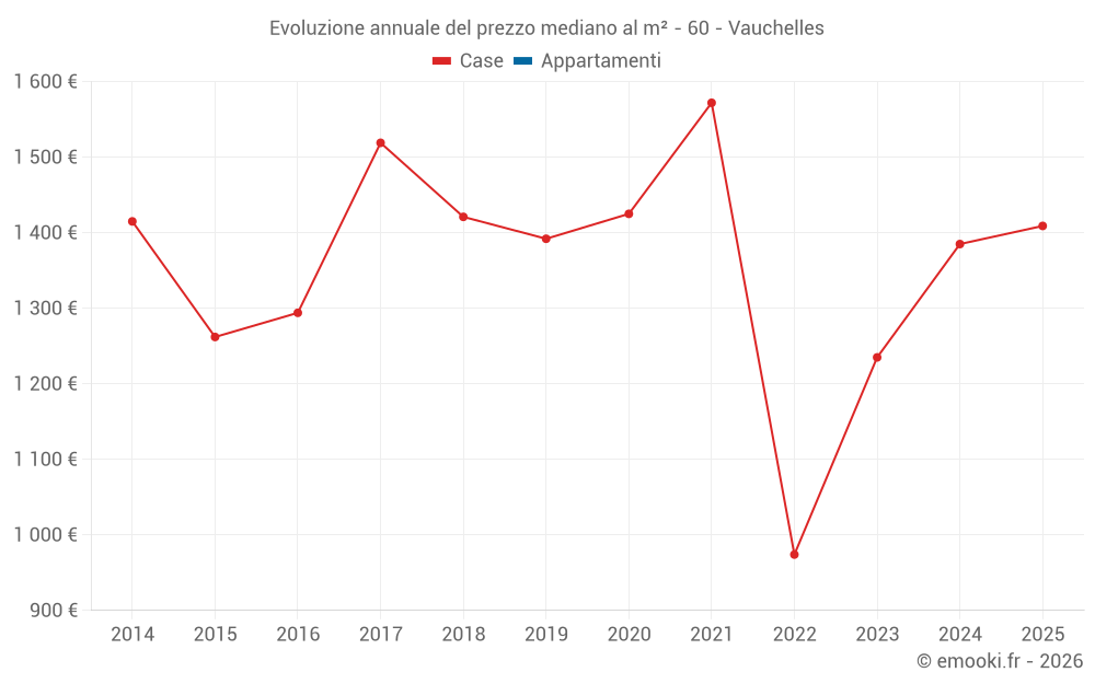 Evoluzione del prezzo mediano al m² degli appartamenti