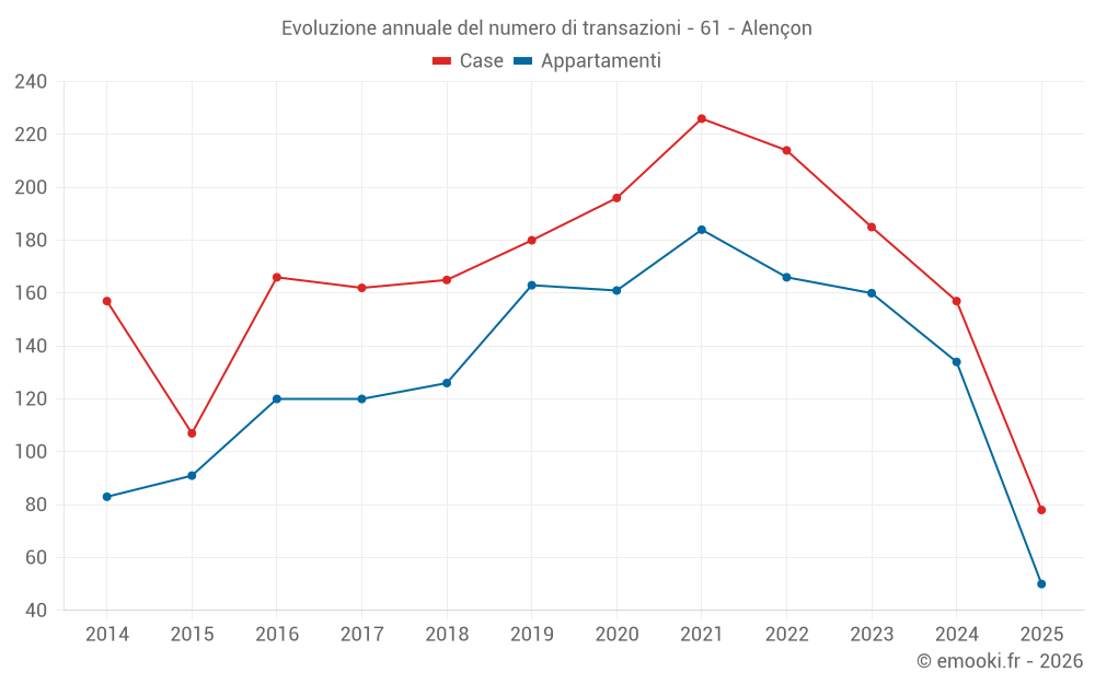 Il prezzo mediano sulle 27 transazioni di case degli ultimi 3 mesi nel comune di Alençon era di 1 406 € al metro quadrato per un valore patrimoniale mediano di 101 100 €. In questo periodo il 60% delle transazioni era tra 1 135 e 1 672 € al metro quadrato (dal 2° all'8° decile).