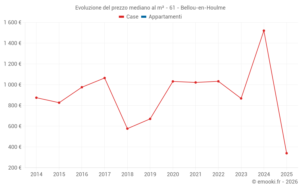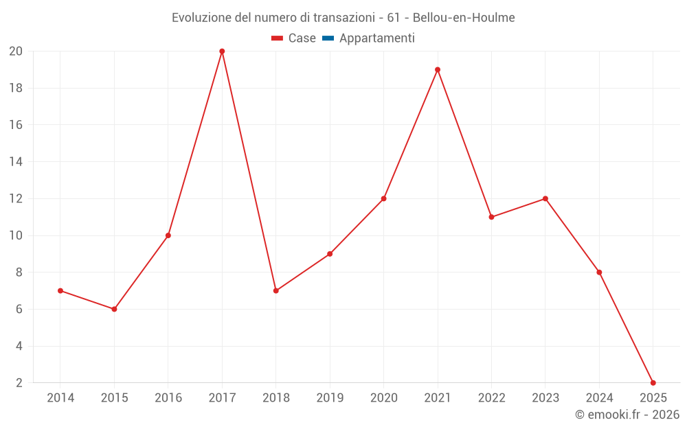 Il prezzo mediano sulle 19 transazioni di case degli ultimi 24 mesi nel comune di Bellou-en-Houlme era di 1 048 € al metro quadrato per un valore patrimoniale mediano di 81 000 €. In questo periodo il 60% delle transazioni era tra 509 e 1 910 € al metro quadrato (dal 2° all'8° decile).